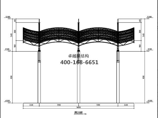 我公司設(shè)計人員的周口盛和小學(xué)膜結(jié)構(gòu)看臺/頂棚工程設(shè)計方案得到甲方確認(rèn),部分設(shè)計圖紙如下:
